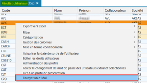 Depuis les résultats de recherche des utilisateurs > clic droit sur une sélection d'un ou plusieurs utilisateurs, la fonction Envoyer un e-Mail a été ajoutée. Cette fonction ouvre un mail brouillon avec l'outil de messagerie par défaut sur le poste de l'utilisateur (par exemple Microsoft Outlook), avec les adresses mail des utilisateurs ajoutés en destinataires du mail.