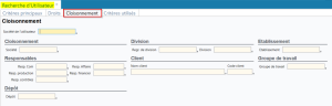 Dans l'écran de recherche des utilisateurs (Tiers > Gestion des utilisateurs), l'onglet Cloisonnement a été ajouté pour permettre de rechercher les utilisateurs en fonction de leur cloisonnement.