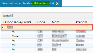 Dans l’écran de recherche des collaborateurs (Tiers > Collaborateurs), les résultats de recherche sont maintenant catégorisés par responsable si un responsable est renseigné dans le critère Responsable sous l’onglet Critères principaux.
