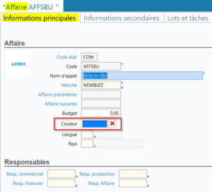 - Le champ Affaire principale qui permet de renseigner l’affaire principale associée à l’événement. La liste d’aide de ce champ affiche les affaires du client principal s’il est renseigné. Sinon, elle affiche toutes les affaires de la société de connexion. S'il n'y a qu'une seule affaire associée à l'événement, celle-ci est renseignée automatiquement.
