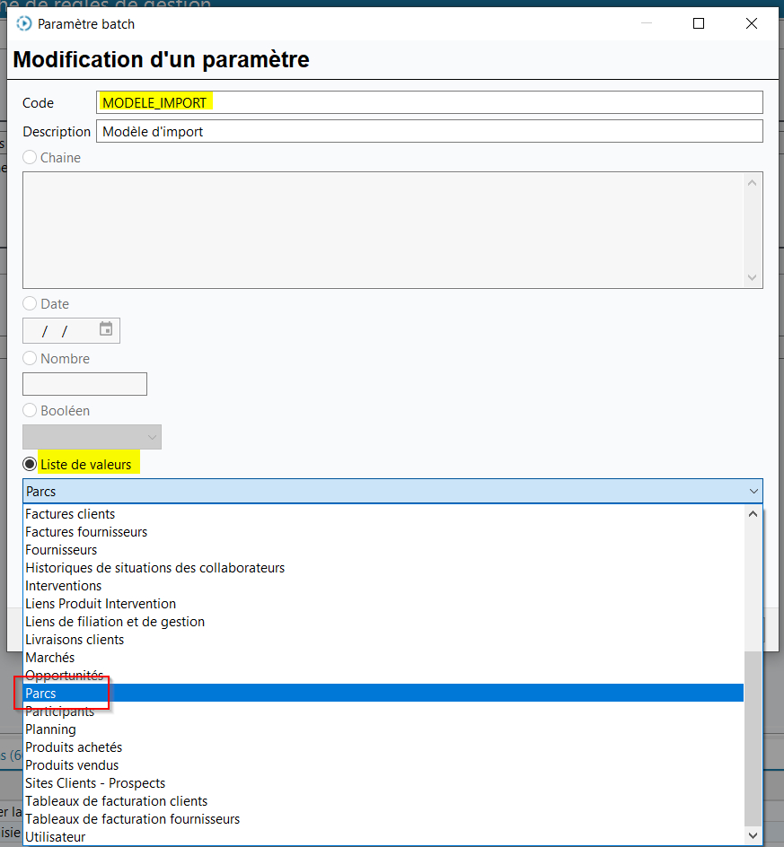 Auparavant, la recherche était de type "contient", c'est-à-dire que la liste d'aide affichait les résultats contenant la valeur saisie. Désormais, la recherche est de type "commence par", ce qui signifie que la liste d'aide affiche uniquement les résultats commençant par la valeur saisie. Cependant, il est toujours possible d'effectuer une recherche "contient" si besoin grâce au caractère *.