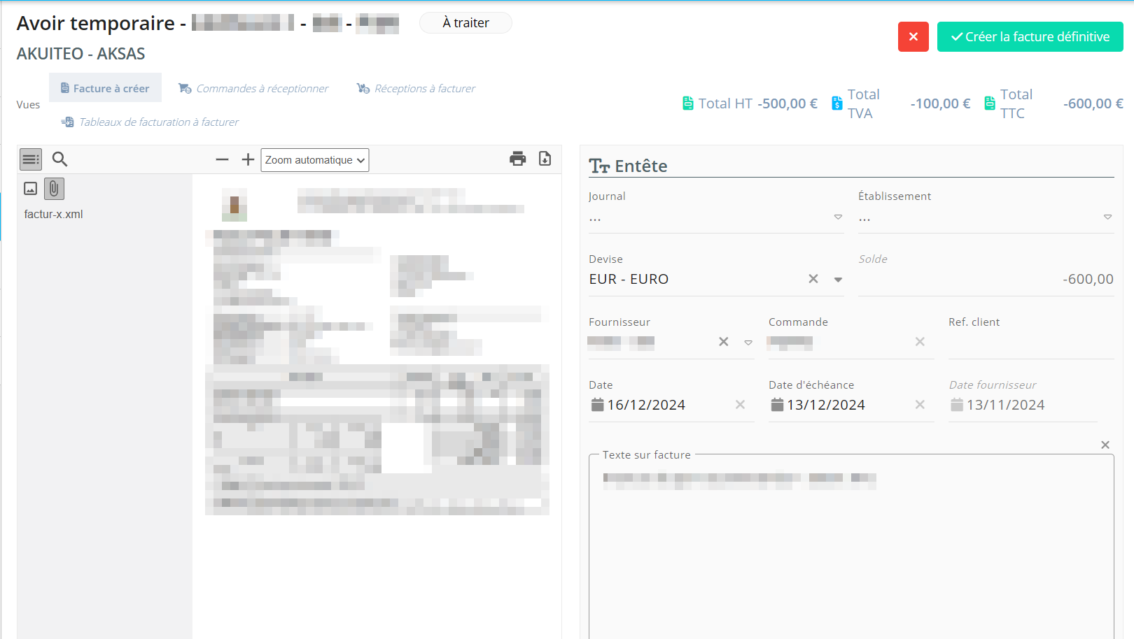 | 040908 | ACHATS | FACTURES TEMPORAIRES | CREER FACTURE DEFINITIVE |