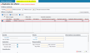 Des améliorations ont été apportées dans le cadre de la duplication des affaires millésimées (Gestion > Affaires).