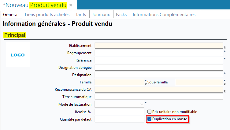 - Sur les produits vendus (Gestion > Ventes > Produits vendus puis onglet Général > section Principal). Cette case est cochée par défaut.
