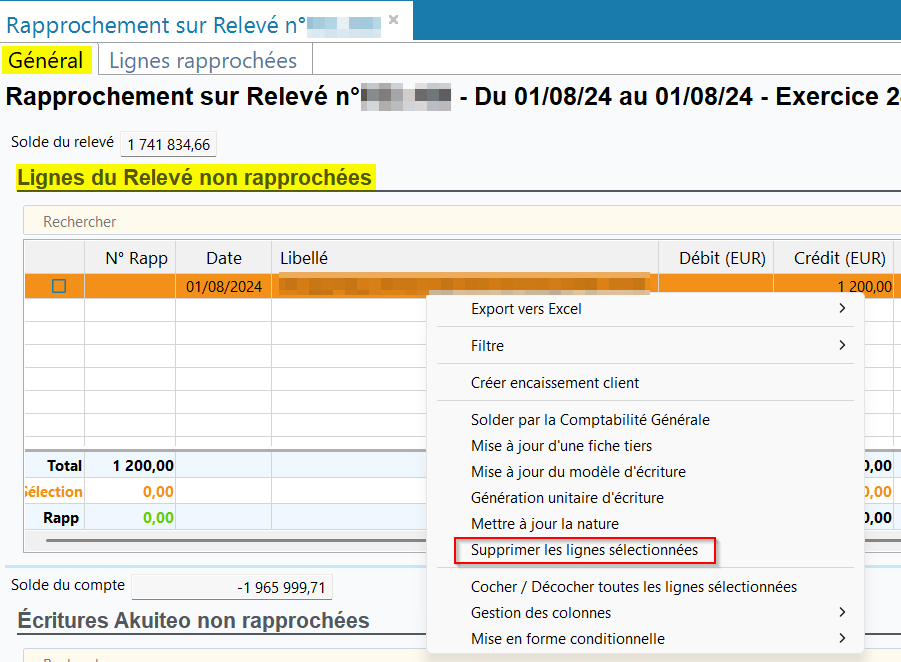 Auparavant, il n'était pas possible de rapprocher des lignes de relevé bancaire sans associer au moins une ligne d'écriture non rapprochée.