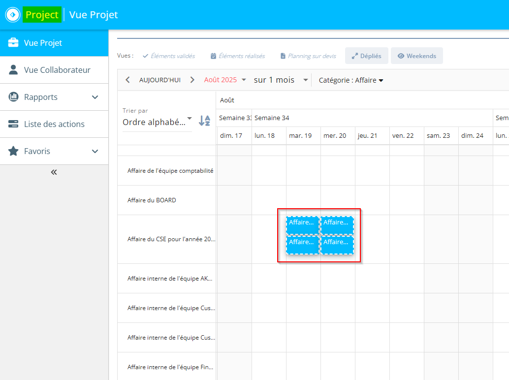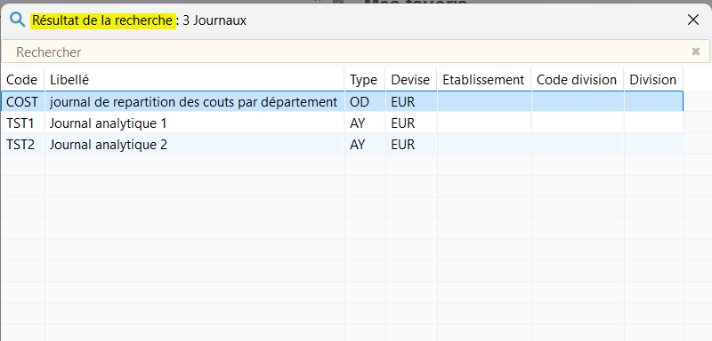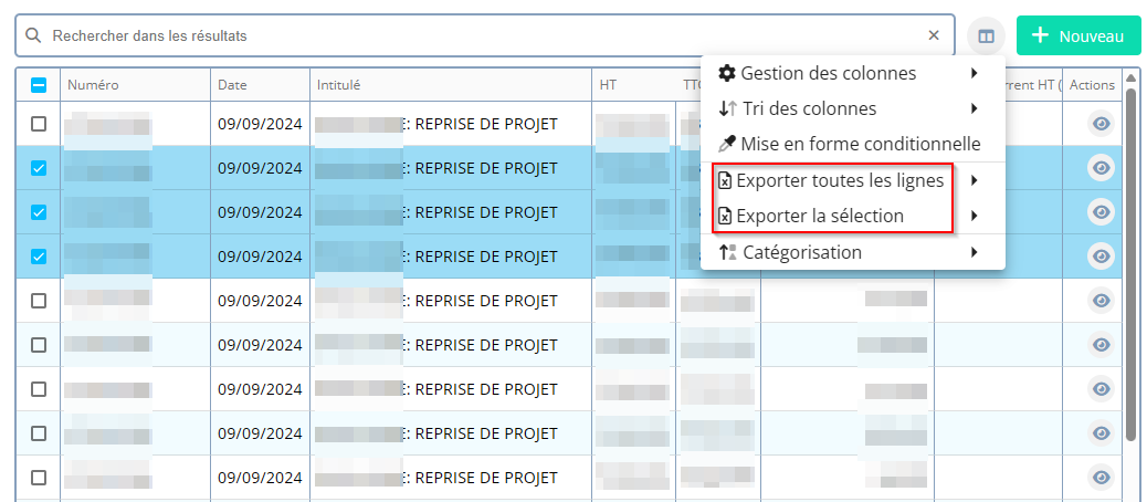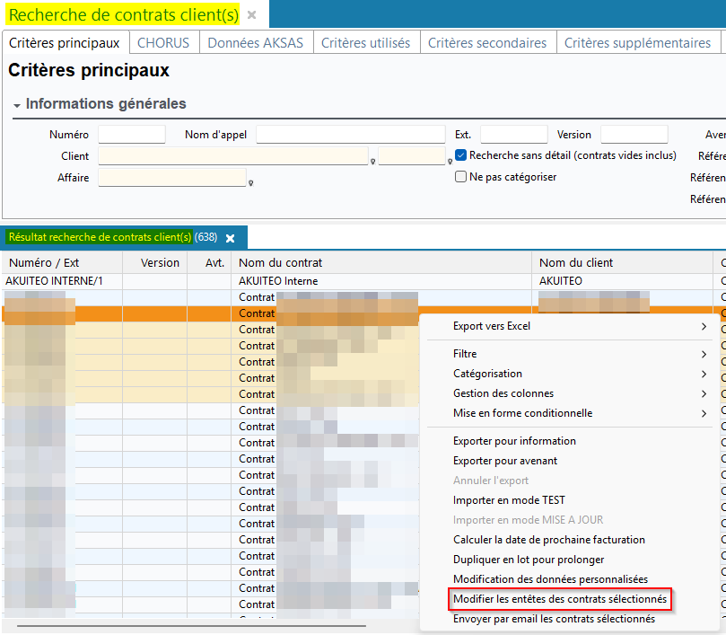Les affaires qui disposent du même millésime peuvent être dupliquées en lot vers le millésime suivant en faisant un clic droit sur une sélection de résultats de recherche d'affaires puis en cliquant sur Duplication en lot des affaires sélectionnées.