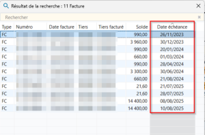 Désormais, lorsque la facture à lier à la ligne de relevé bancaire possède plusieurs dates d'échéances non payées, c'est l'échéance la plus ancienne qui est prise en compte.