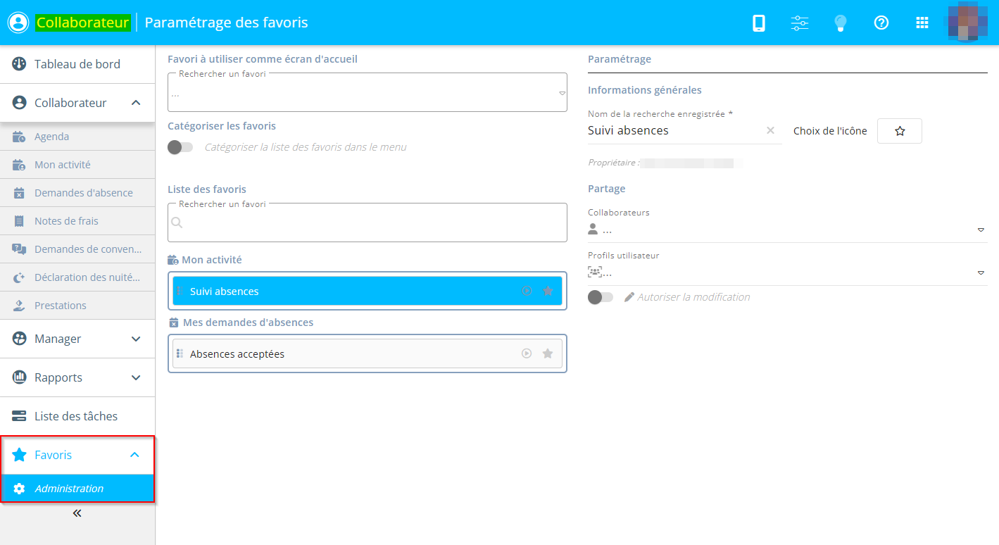 | Portail collaborateur > Manager | Employee Manager Times | Donne accès au menu Manager > Temps passés du nouveau Portail Collaborateur. Ce menu Temps passés reprend les mêmes fonctionnalités que celles disponibles dans les menus de contrôle et de validation des temps passés du Portail Collaborateur actuel avec une nouvelle interface. | 5.0.24 |