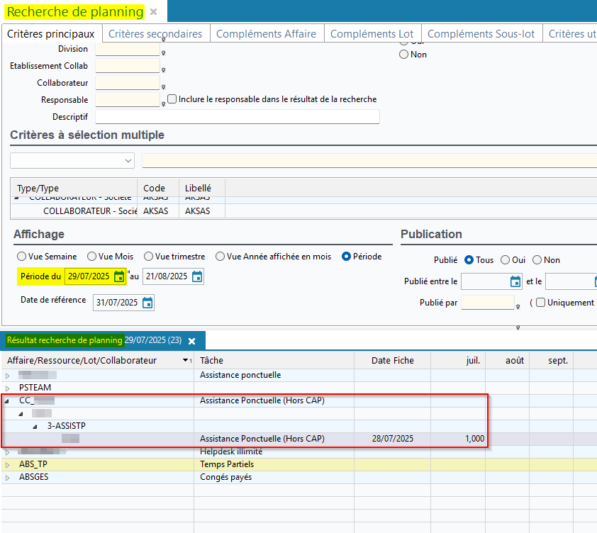 La fonction Analyse des Plannings n'est pas disponible si la règle de gestion PL_CHARGE est activée.