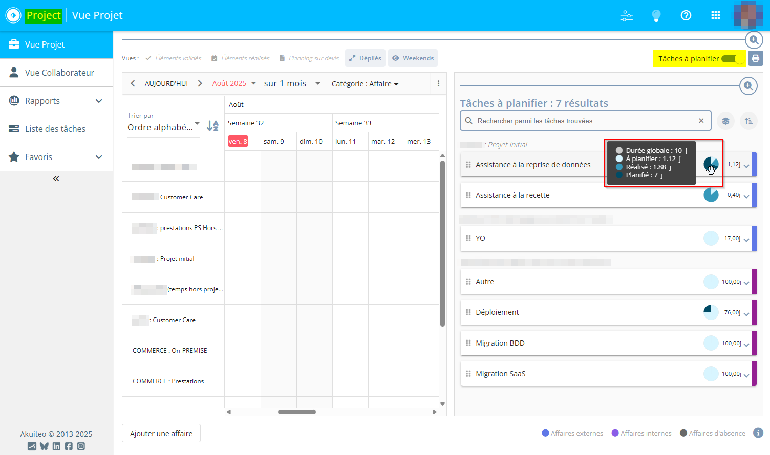 La colonne Descriptif a été ajoutée dans l'analyse des plannings d'une affaire dans l'Application Desktop > Gestion > Affaires puis Edition > Planning > Analyse des Plannings.