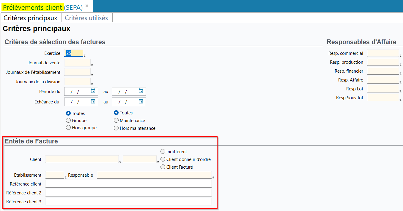 Auparavant, il n'était pas possible d'exclure des échéances d'un prélèvement client.
