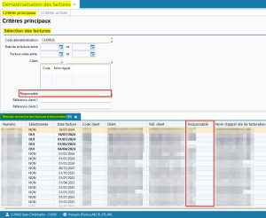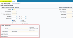 Dans l'écran de recherche des tableaux de facturation client (Gestion > Ventes > Tableaux de facturation > onglet Critères principaux > section Dates de facturation prévisionnelle), le critère de recherche Non marquées comme à facturer a été ajouté. Lorsque cette case est cochée, les résultats de recherche contiennent uniquement les tableaux de facturation client avec des lignes pour lesquelles la case A facturer est décochée (onglet Lignes > section Détails).