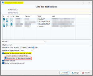 - Tableaux de facturation (Gestion > Ventes > Tableaux de facturation) ;