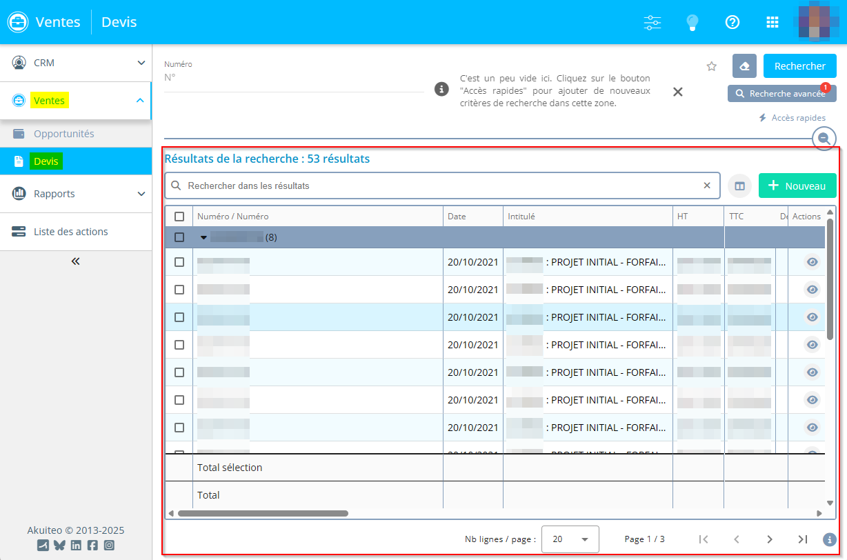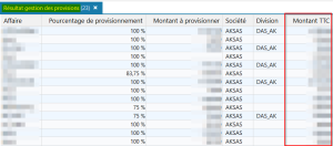 Désormais, la colonne Montant TTC a été ajoutée dans les résultats de recherche des provisions.