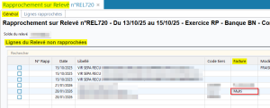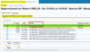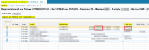 - La ligne de relevé est rapprochée avec l'écriture issue de la comptabilisation ;