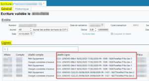 Cette fonction permet ainsi de pouvoir valider en lot plus d'écritures que lorsque la recherche est lancée avec les lignes.