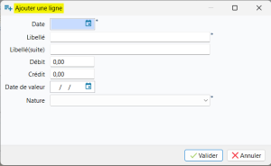 | 071116 | COMPTA GENE | GESTION DES RELEVES BANCAIRES | AJOUTER LIGNE RELEVE BRIDGE |