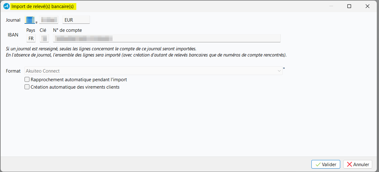 Pour plus d'informations, voir Importer un relevé bancaire et Batch ImportReleveBancaire.