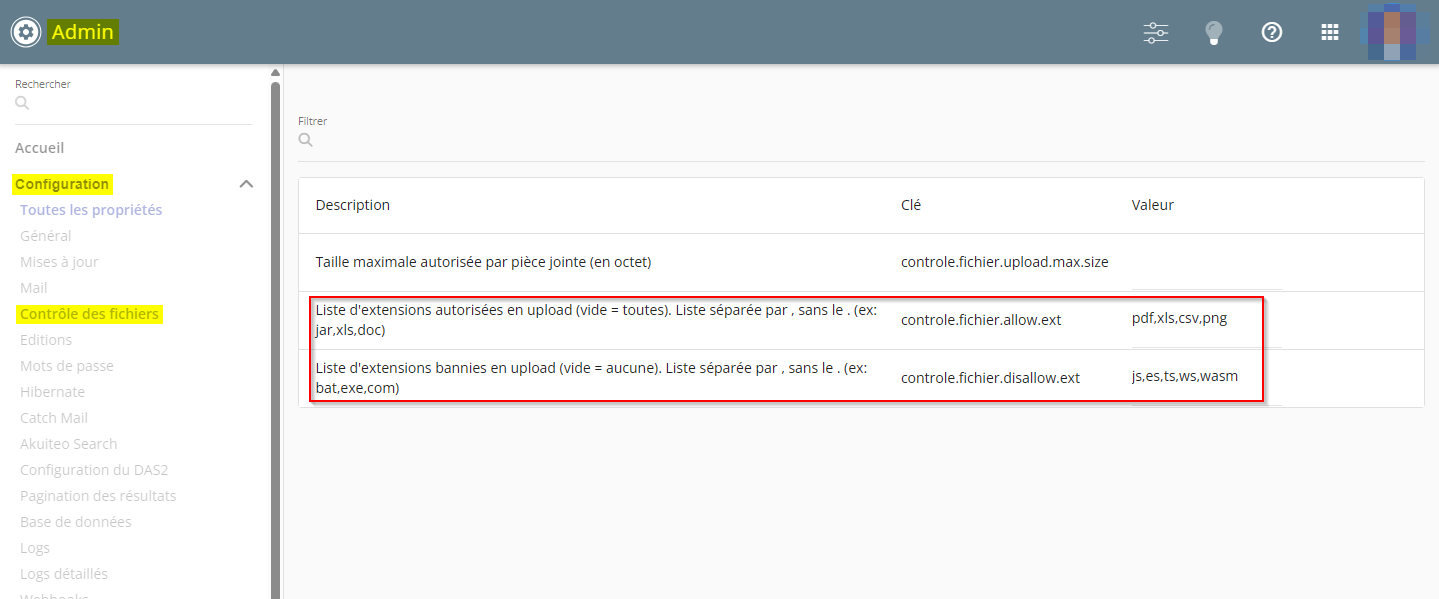 - Dans le cadre de la mise à jour des dépendances d'Akuiteo, les classes relatives à OpenOffice ont été supprimées. Ainsi, les champs Hôte du serveur OpenOffice et Port OpenOffice disponibles dans la Console d'administration > Configuration > Edition ont également été supprimés.