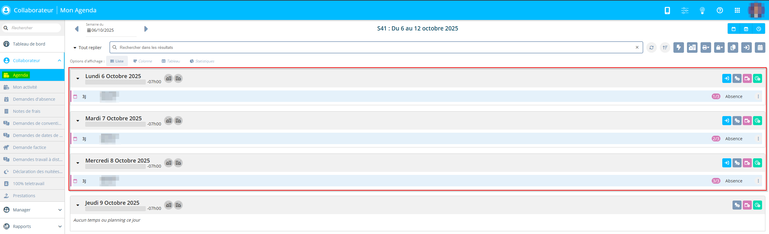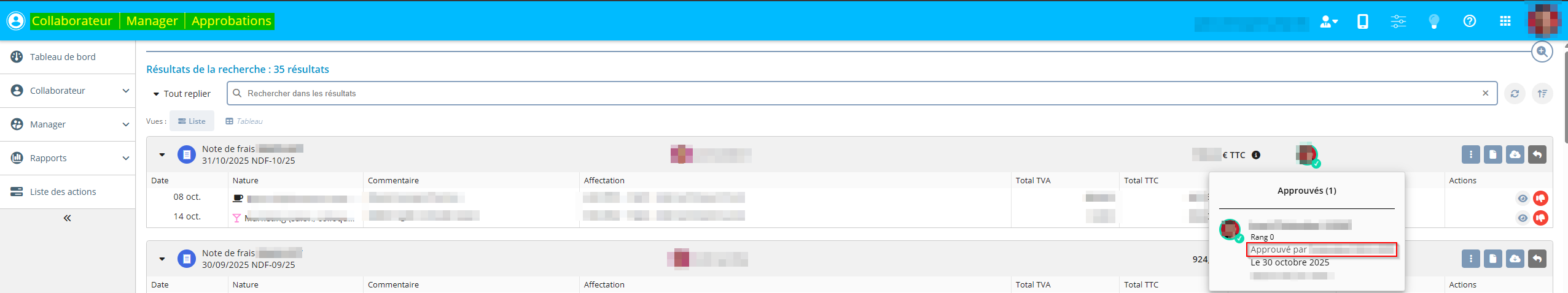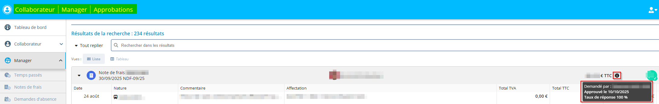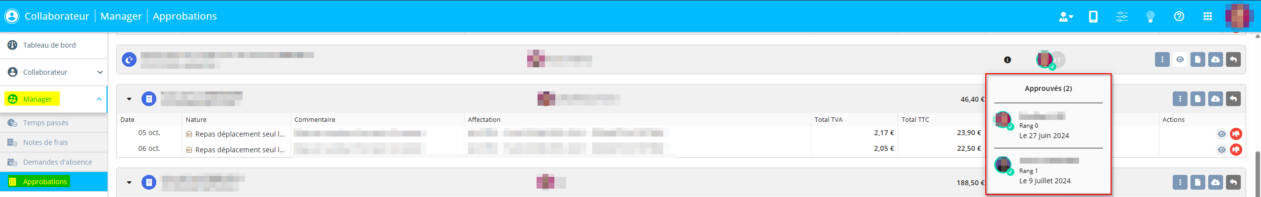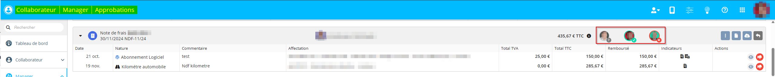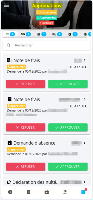 Il est également possible de valider ou refuser des notes de frais et des demandes d'absence depuis ce menu.