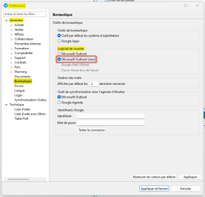 Depuis les préférences utilisateur (Edition > Préférences > Générales), l'option Akuiteo doit être sélectionnée pour la préférence Ouvrir les URL dans afin d'ouvrir l'onglet dans l'Application Desktop.