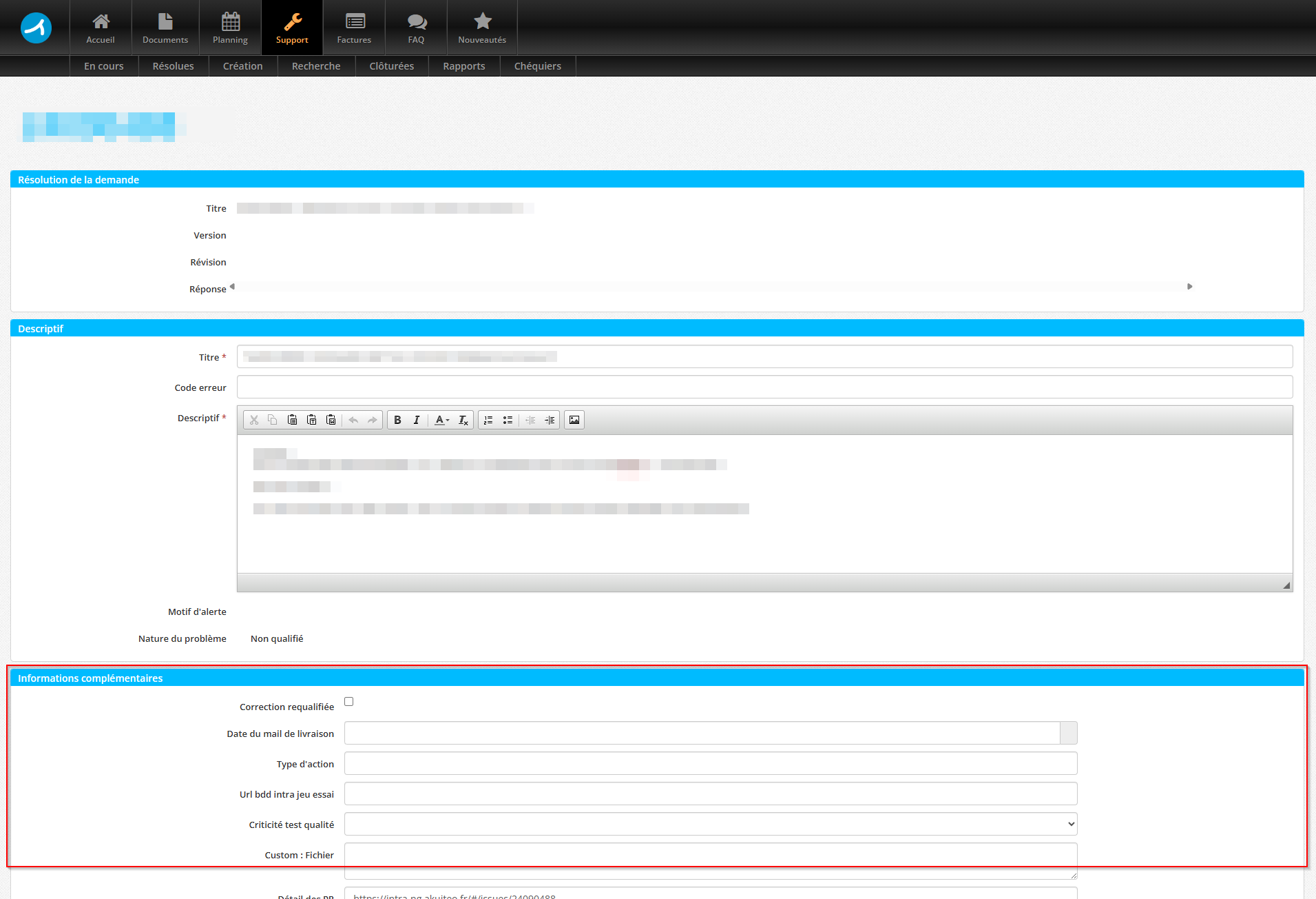 | Portail support | Texte Riche | Voir nouveauté Demandes support : Texte riche sur l'information interne des interventions et les messages directs. | 5.9.0 |