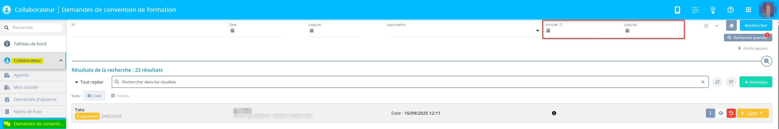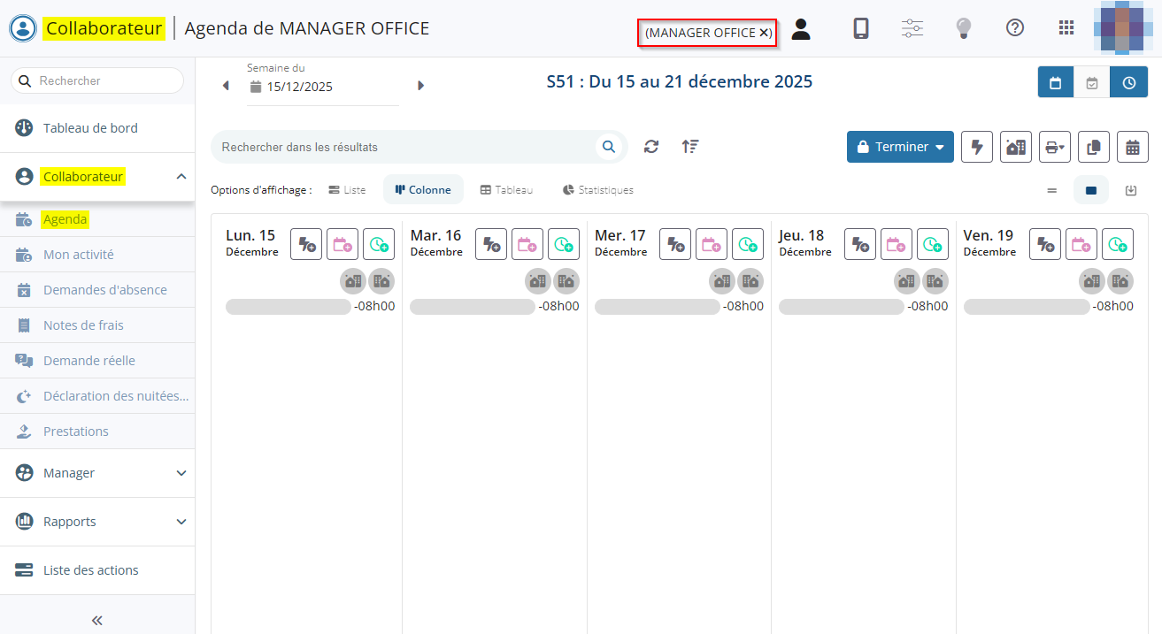 Pour accéder à cette fonctionnalité, l'utilisateur doit préalablement s'être connecté au Portail Collaborateur > module Manager.