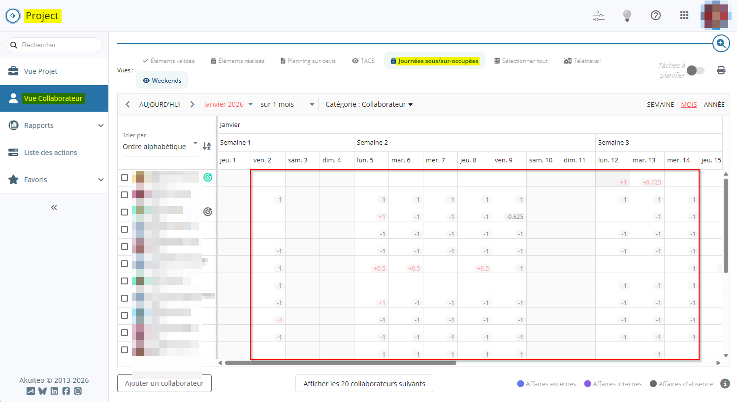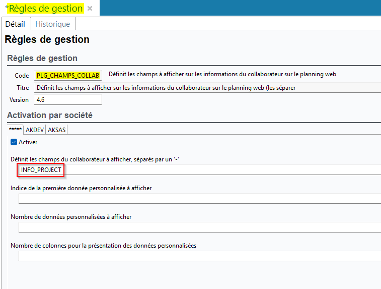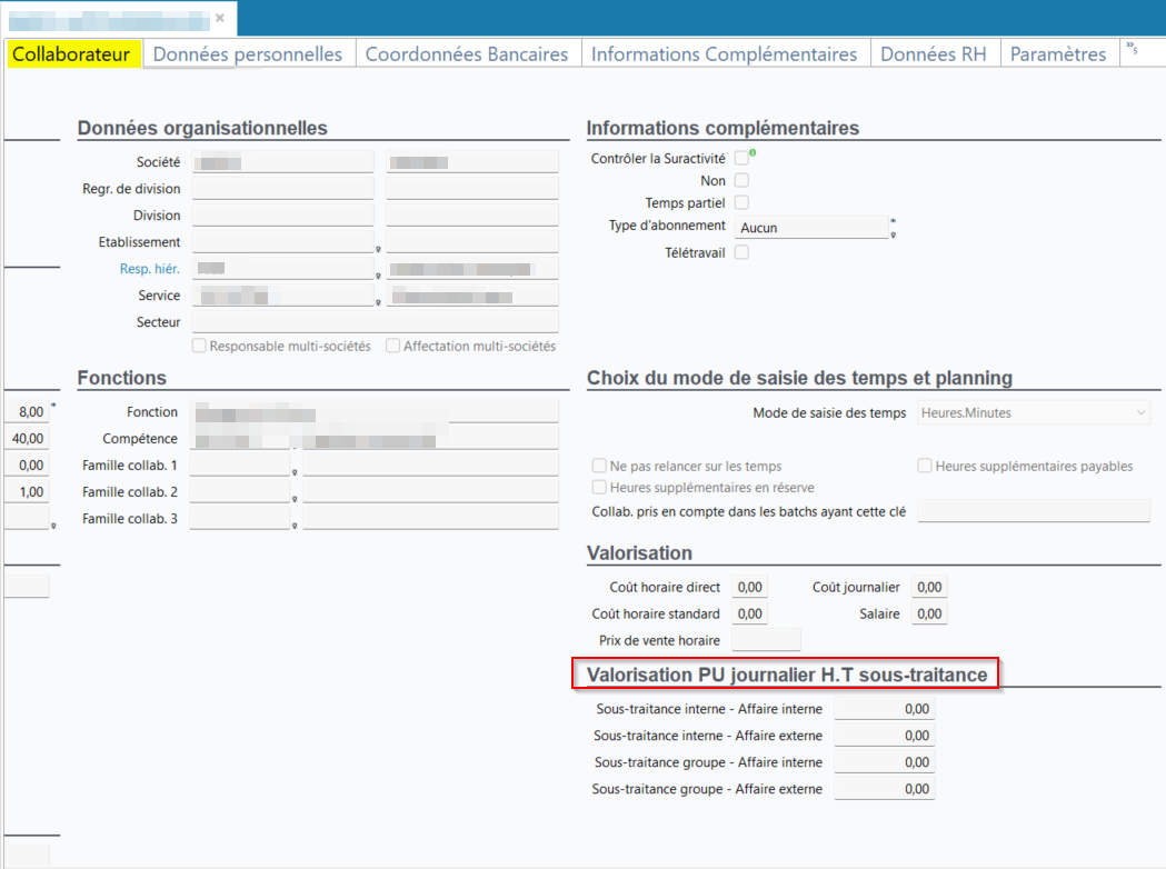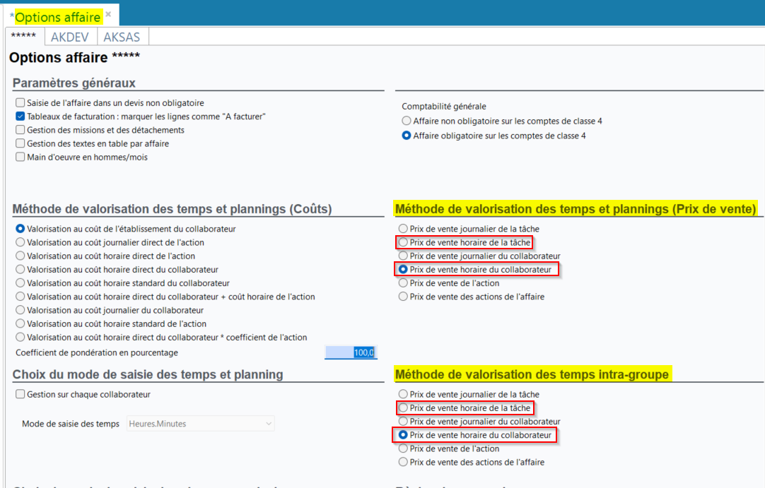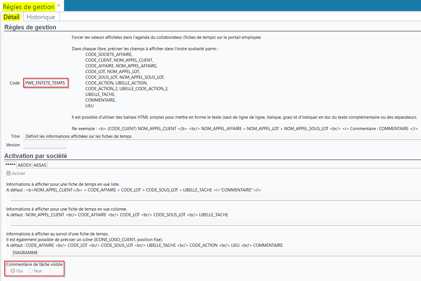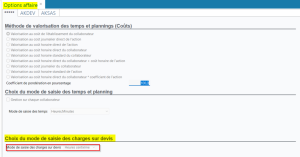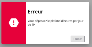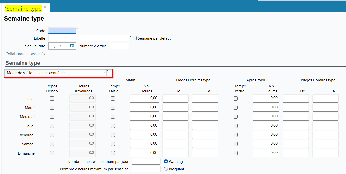 - L'une des options Warning ou Bloquant peut être cochée pour soit avertir le collaborateur soit bloquer la saisie d'un temps passé lorsque le collaborateur dépasse le nombre d'heures maximum sur la journée et/ou la semaine.
