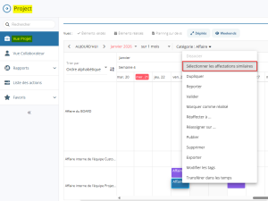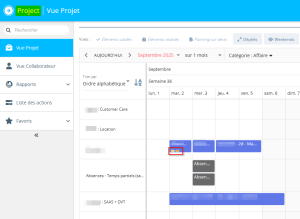 Auparavant, aucun indicateur visuel n'était affiché lorsqu'une dépense ou une demande interne était liée à un bloc de temps passé ou de planning.