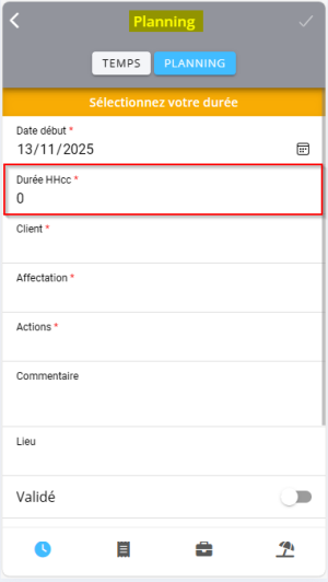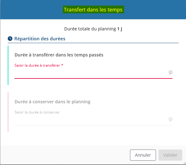 Auparavant, ces options n'étaient pas prises en compte lors du transfert d'un élément de planning dans les temps passés dans Akuiteo Mobile > Temps et plannings.