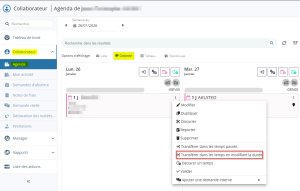| Portail collaborateur > Employee | Employee Agenda | Donne accès au menu Collaborateur > Agenda du nouveau Portail Collaborateur. Ce menu Agenda reprend les mêmes fonctionnalités que celles disponibles dans le menu Agenda du Portail Collaborateur actuel avec une nouvelle interface. | 5.0.13 |