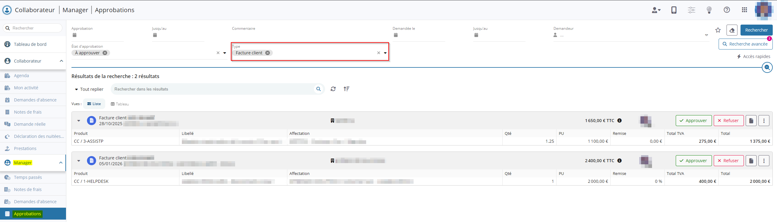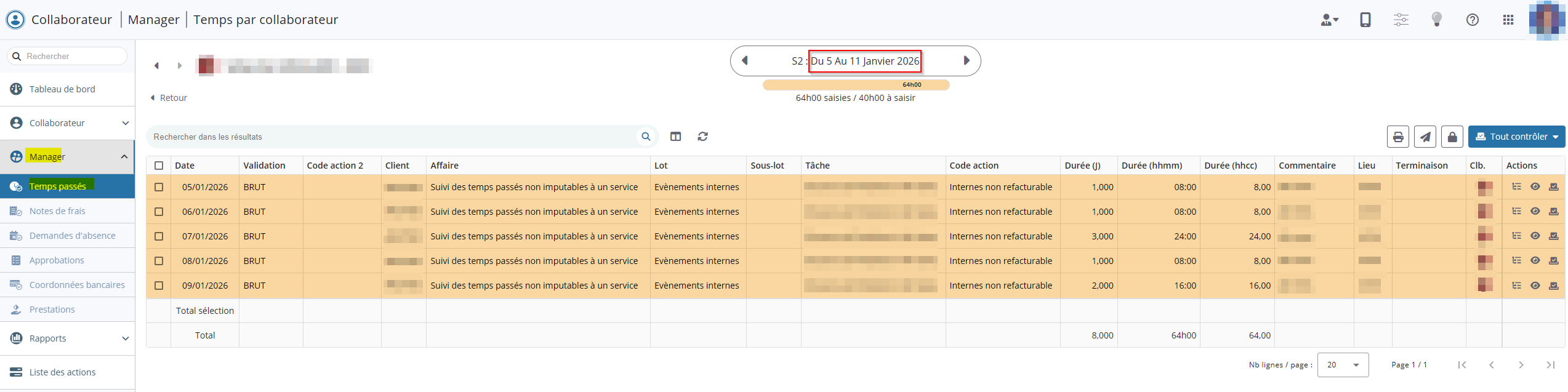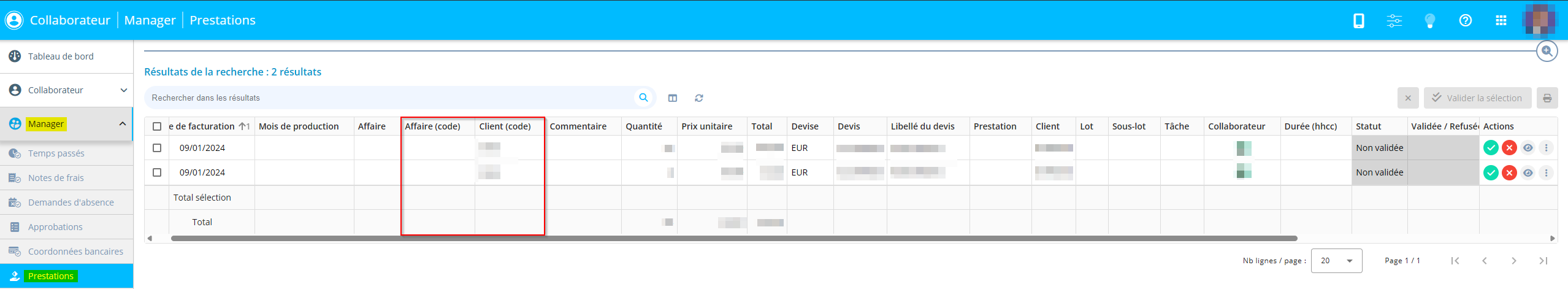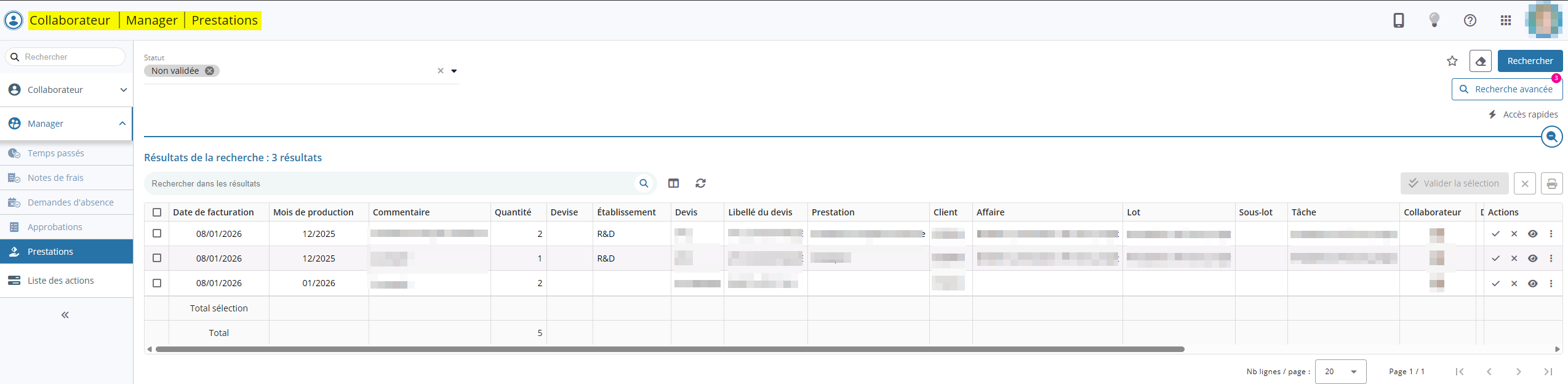 Auparavant, la validation des prestations était uniquement possible depuis le Portail Collaborateur > module Manager > menu Prestations.
