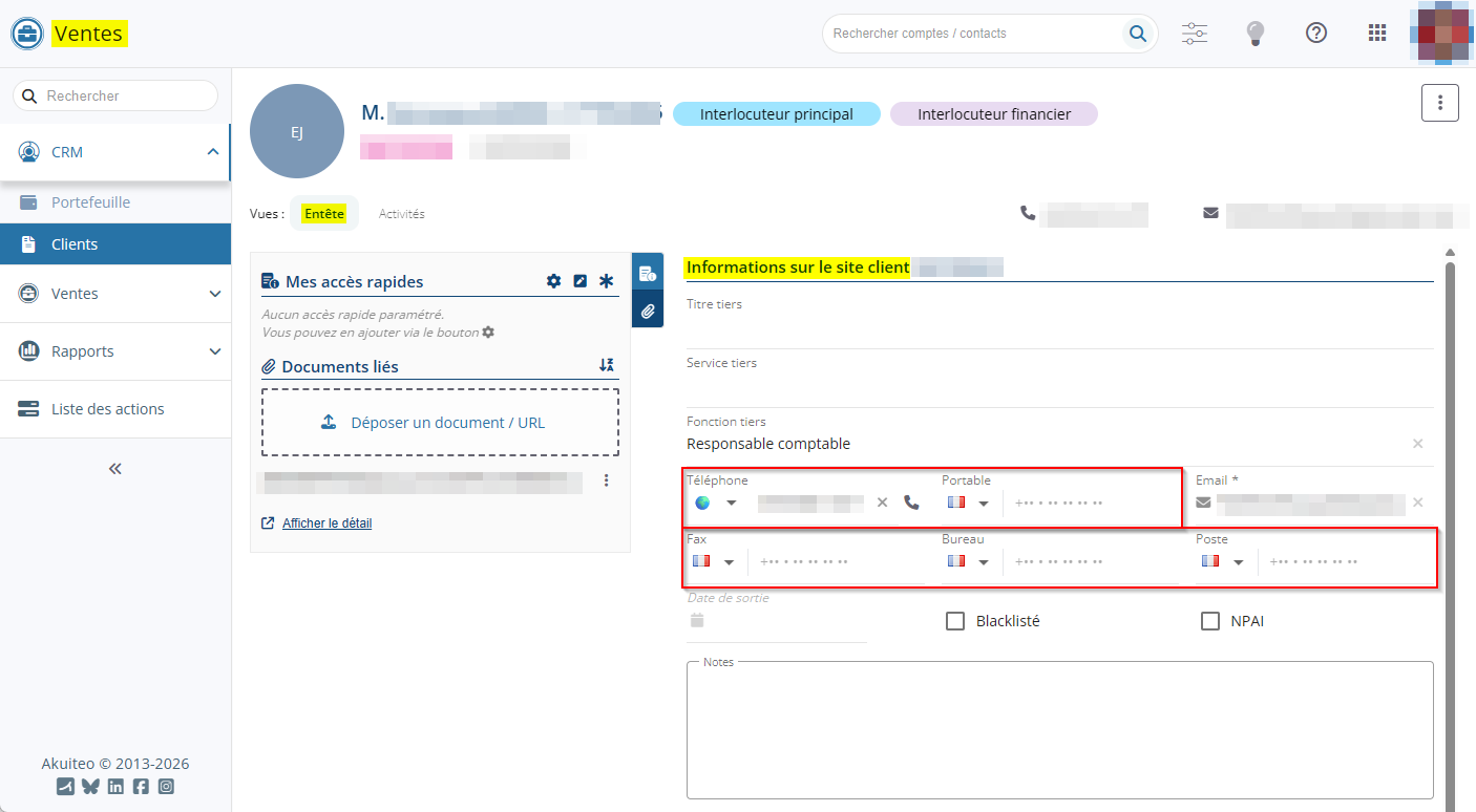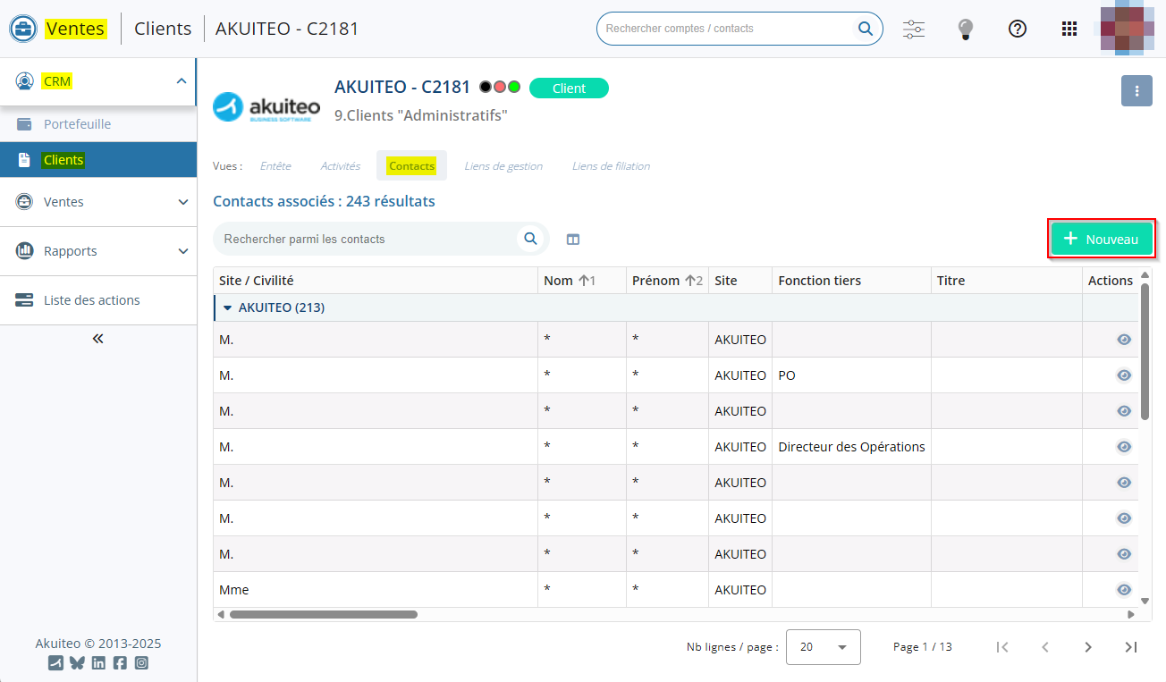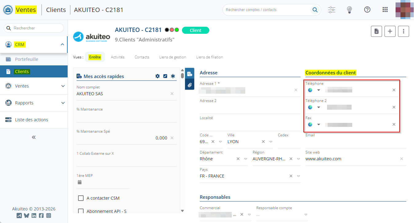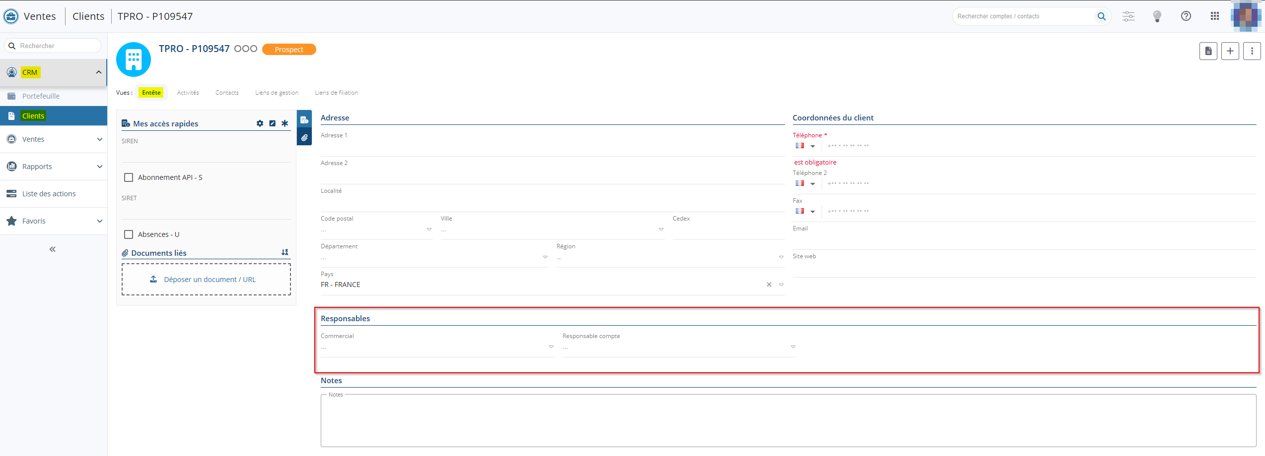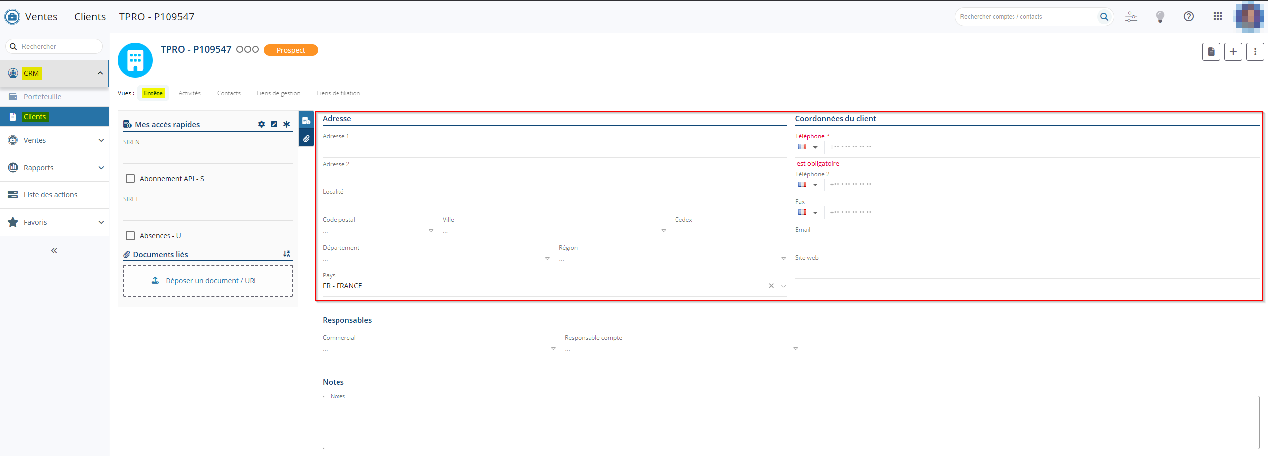 | Portail ventes | Liens Gestion Crm | Voir nouveauté Clients et Prospects : Possibilité de gérer les liens de gestion. | 5.10.0 |
