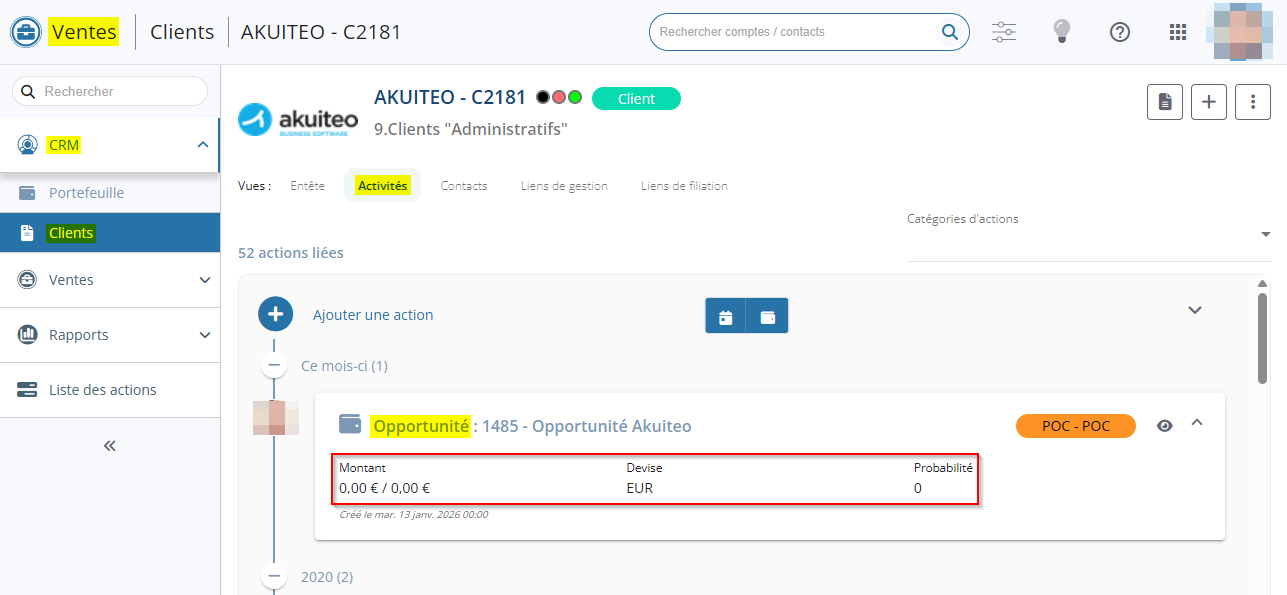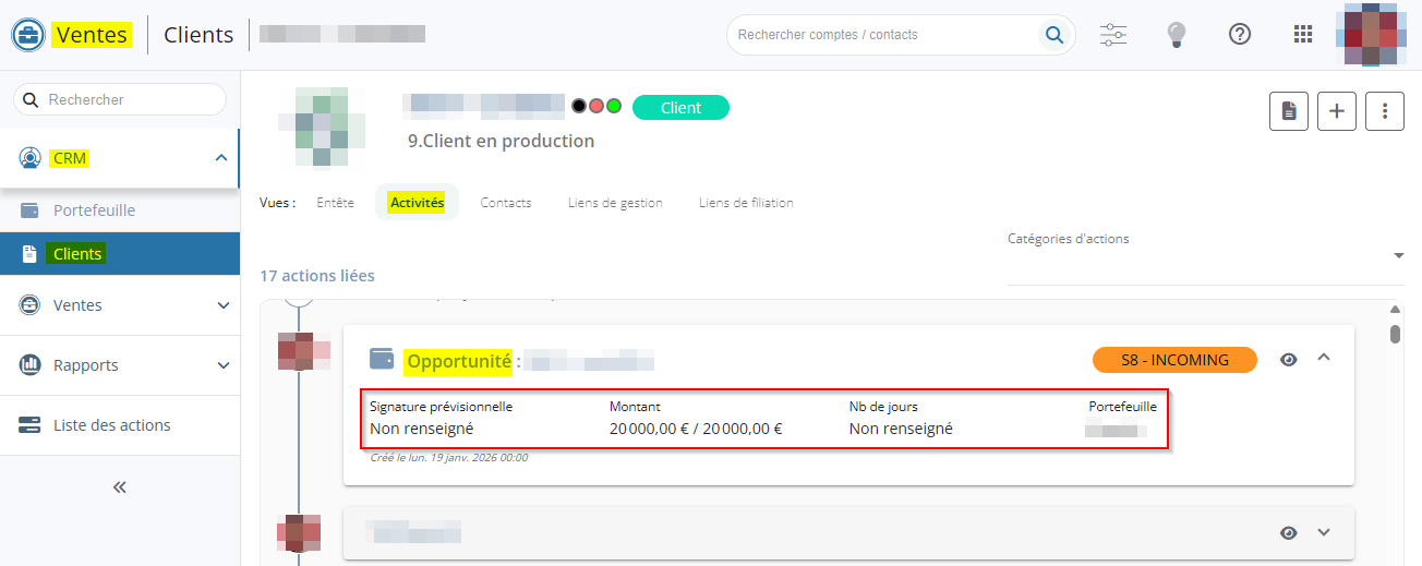 | Portail ventes | Liens Filiation Crm | Voir nouveauté Clients et Prospects : Possibilité de gérer les liens de filiation. | 5.11.0 |