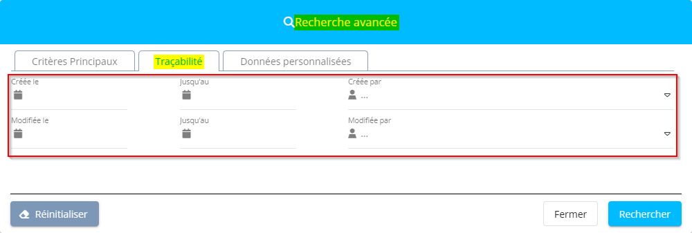 Il permet, lorsque la case est cochée, d'afficher uniquement les informations d'en-têtes des écritures dans le résultat de recherche. Ainsi, le résultat de recherche contient moins de lignes que lorsque les lignes des écritures sont affichées.
