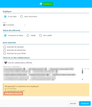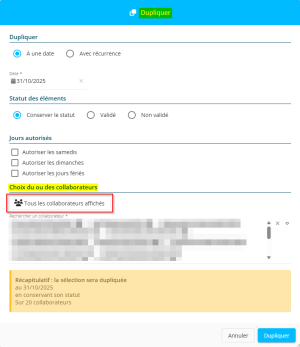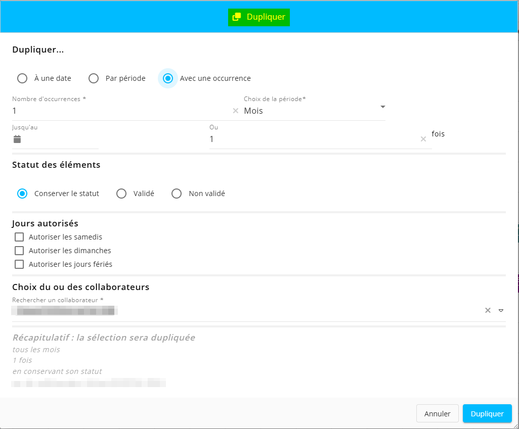 - Un Nombre d'heures maximum par jour et/ou un Nombre d'heures maximum par semaine peuvent être renseignés.