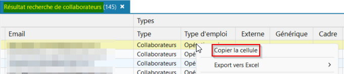 Les fonctionnalités suivantes sont bloquées depuis les résultats de recherche, en faisant un clic droit depuis une sélection de résultats :