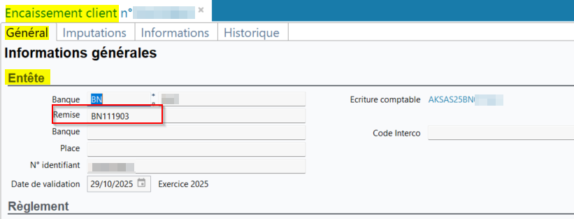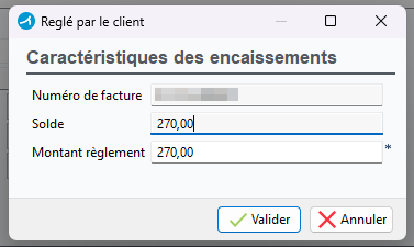 - L'encaissement est imputé sur la facture client déterminée lors de l'import.