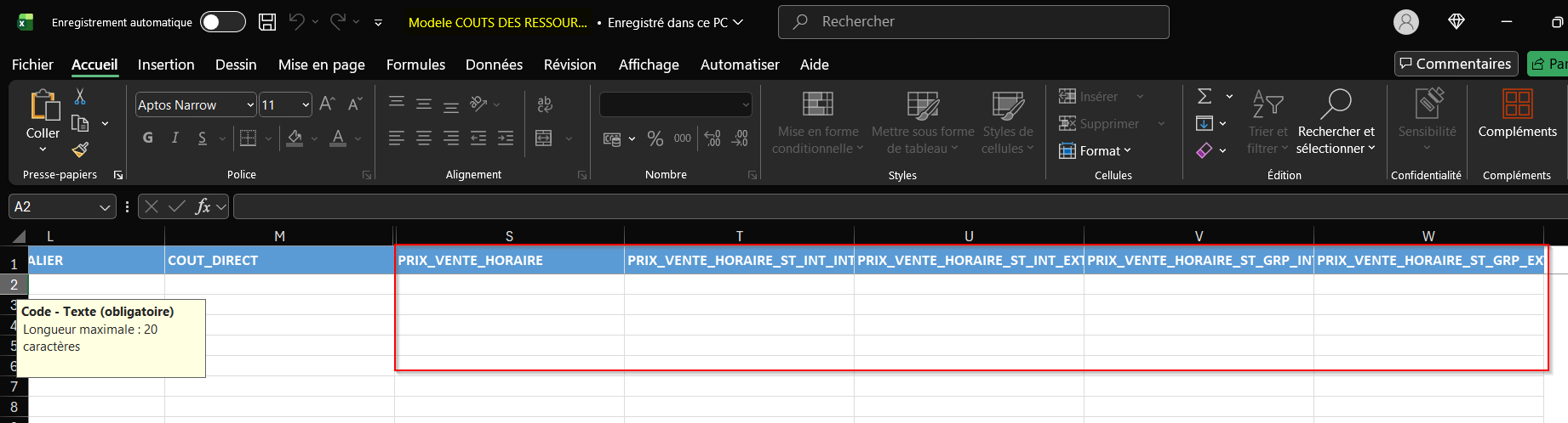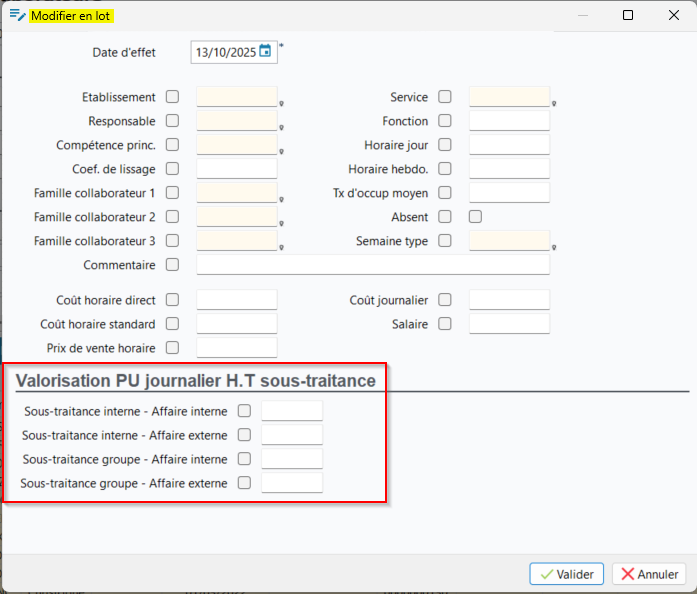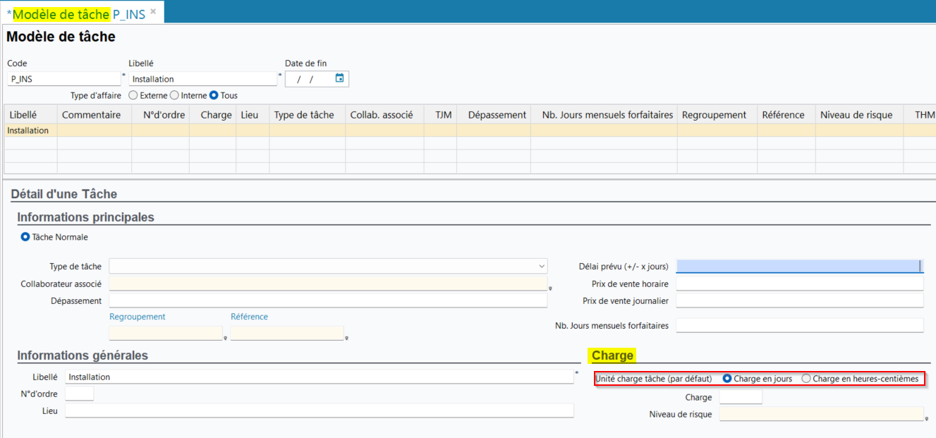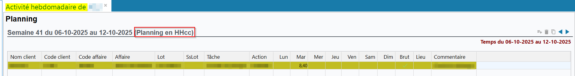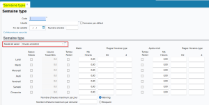 Dans le paramétrage des semaines type (Outils > Paramétrage > Paramétrage Général > Ressources et Main d’œuvre > Semaines types) :