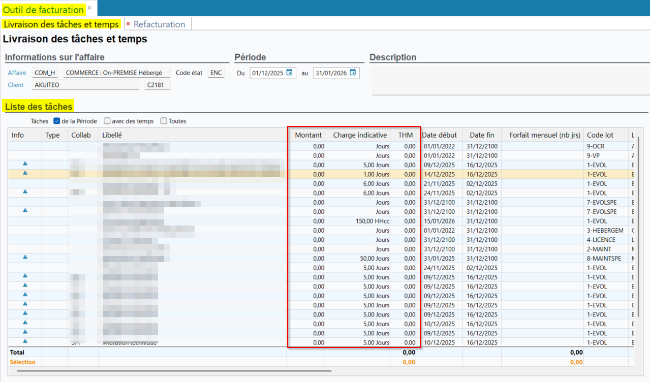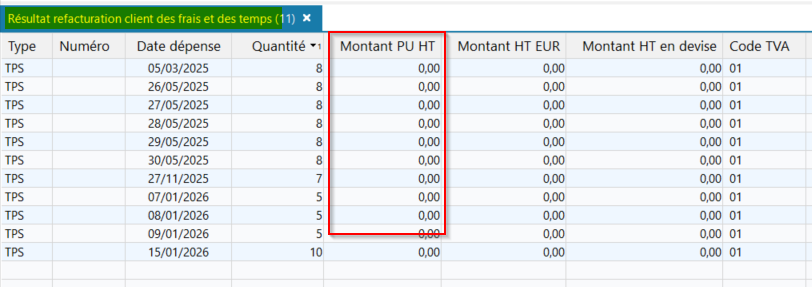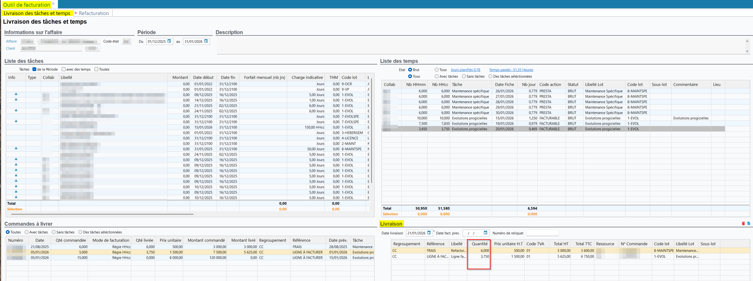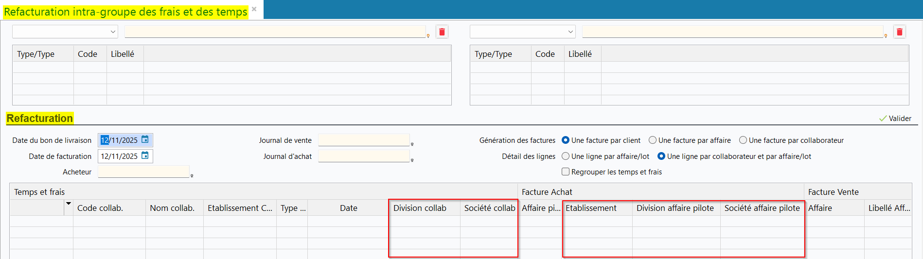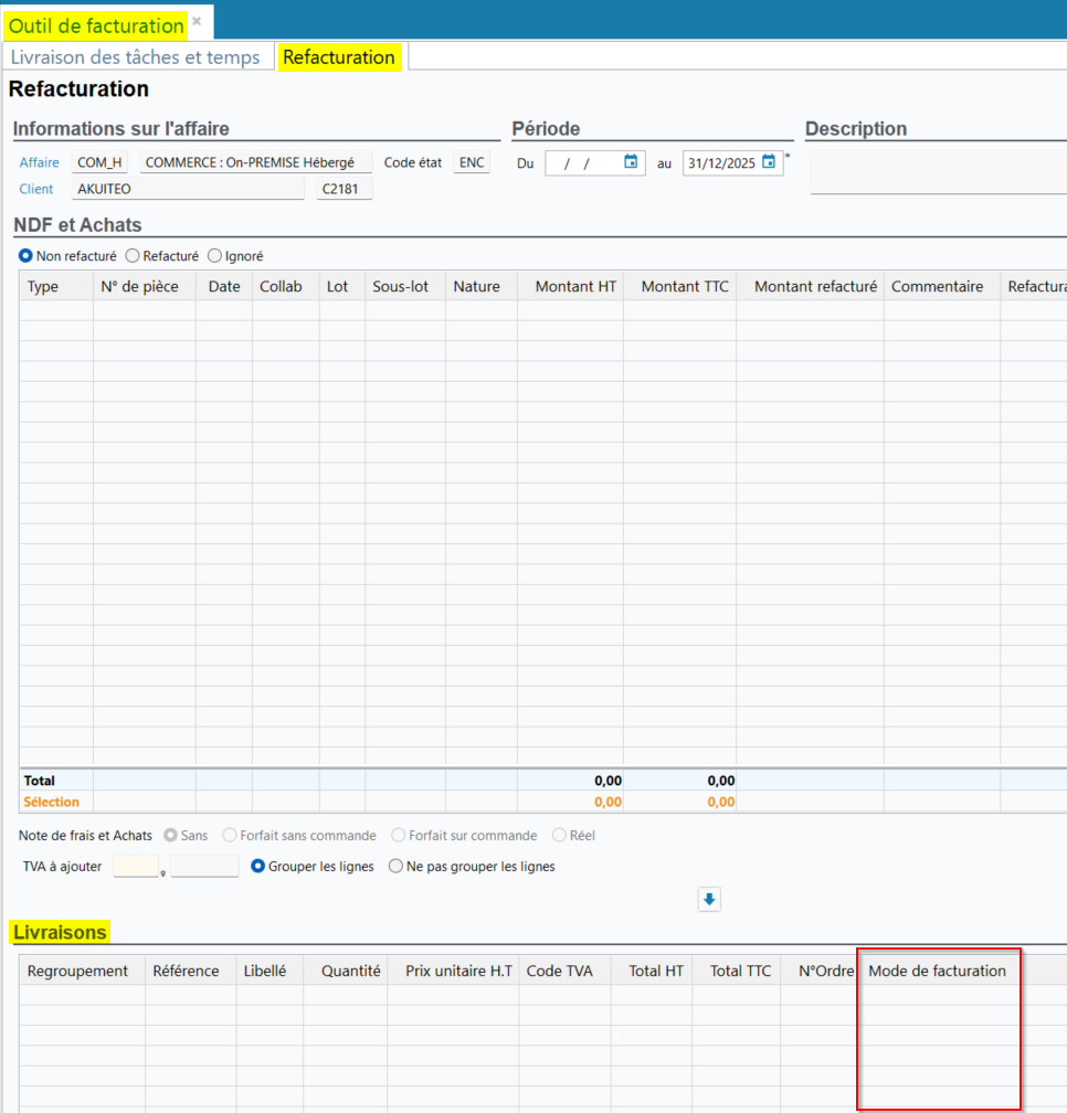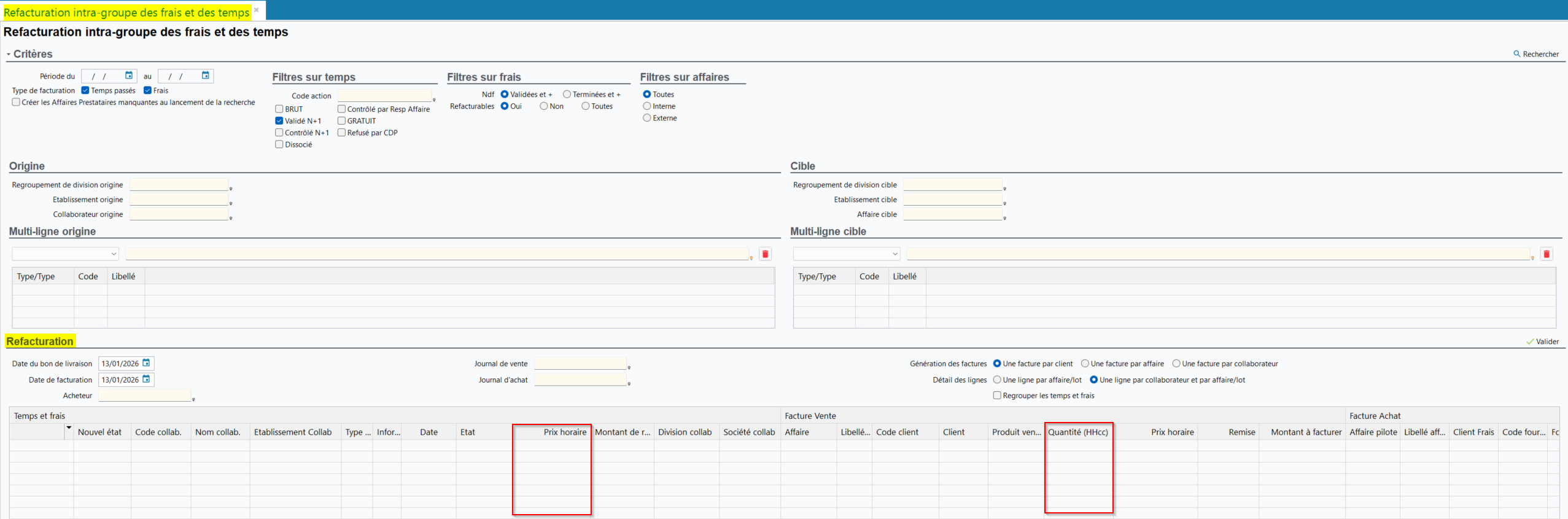 Désormais, les colonnes suivantes ont été ajoutées dans le tableau de la section Refacturation :