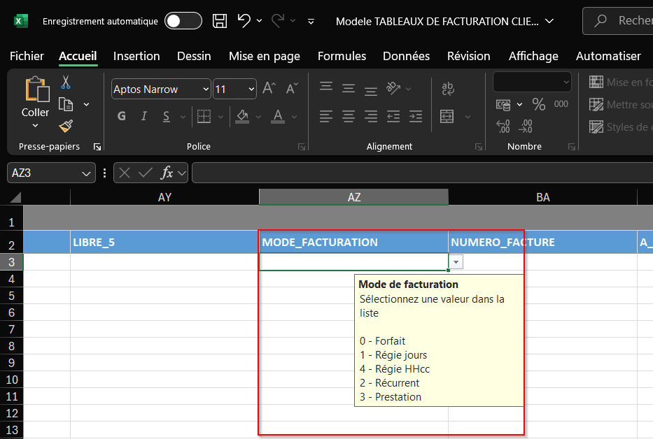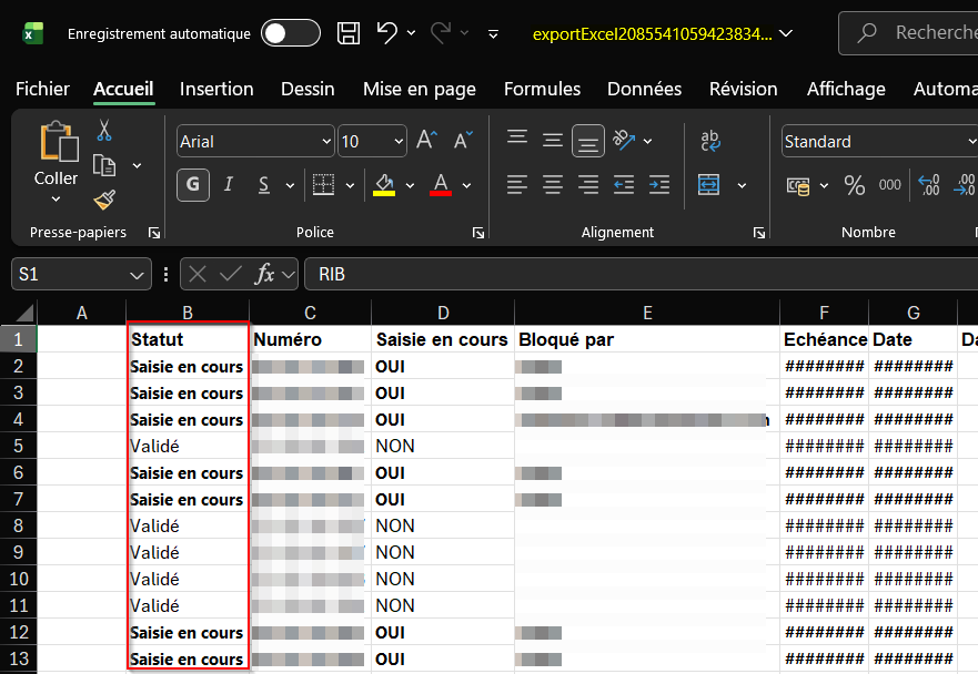 - si une des colonnes contient le numéro d’une facture du client ou du fournisseur.