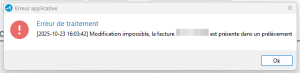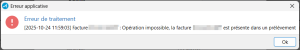 Désormais, un blocage a été ajouté pour empêcher de régler une facture inclue dans un prélèvement.