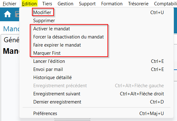 - Réviser le mandat (Edition > Réviser le mandat) ;
